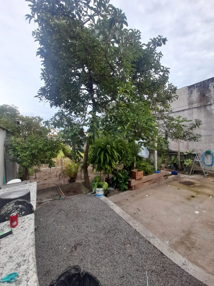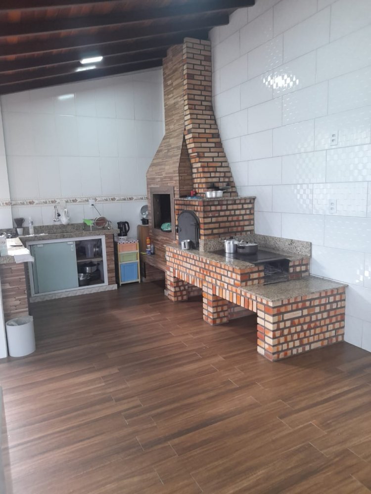 Atrás da casa tem quintal com um apto de 01 quarto, cozinha com fogão a lenha churrasquiera e pergolado.