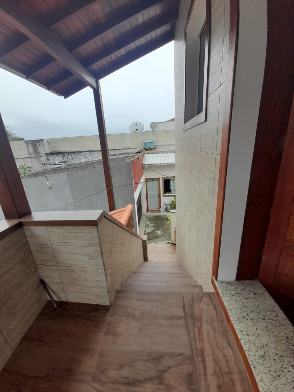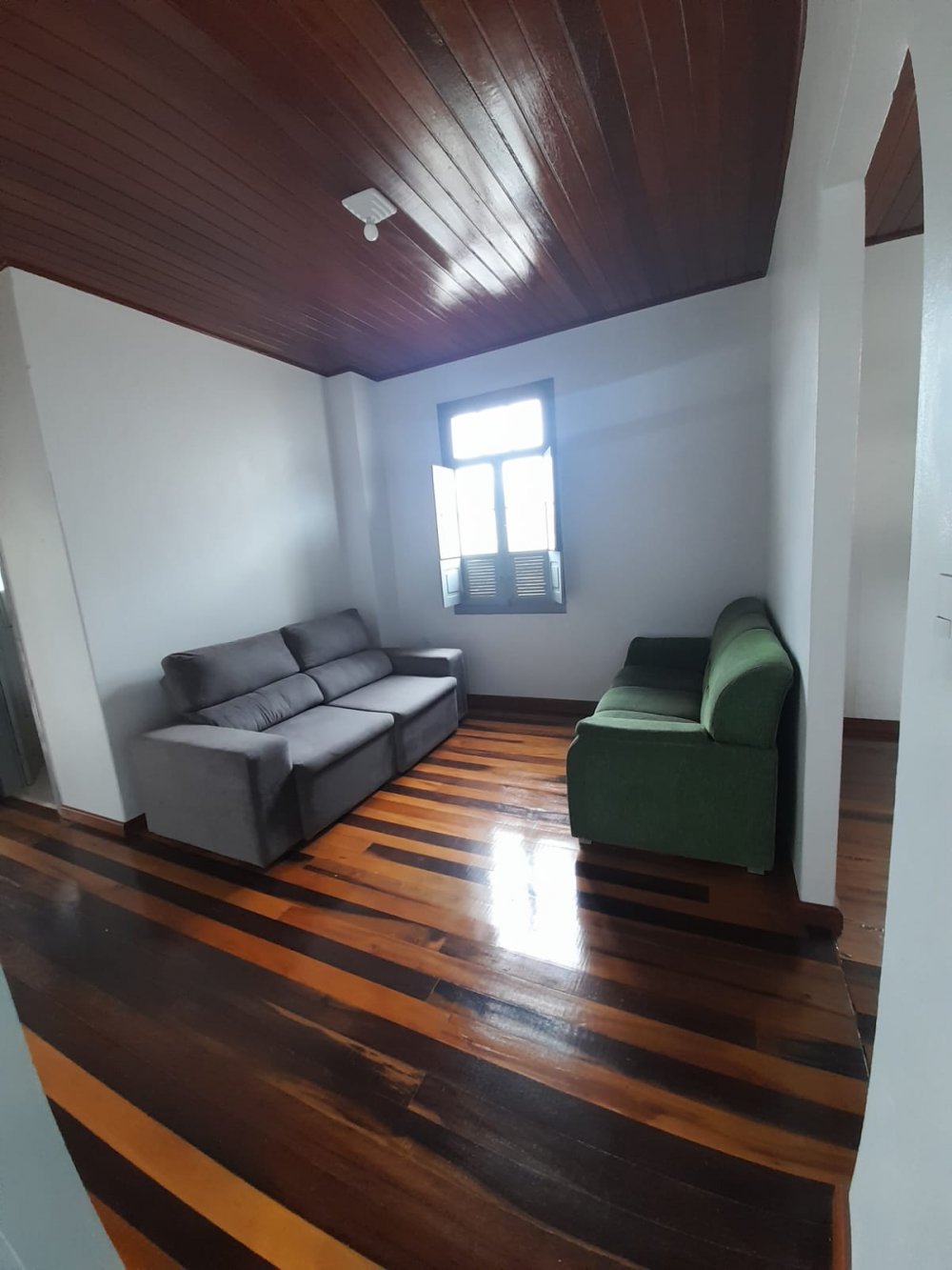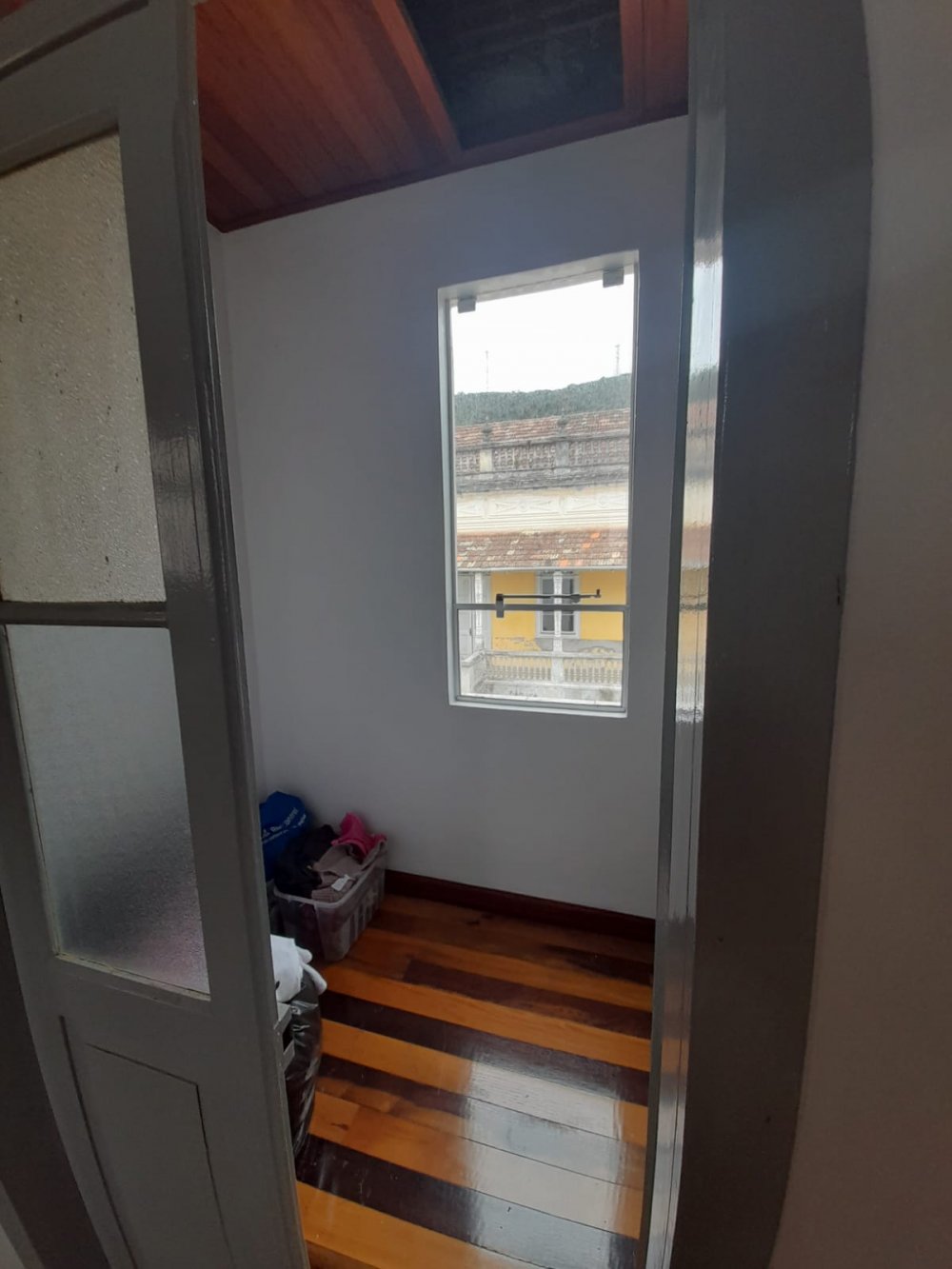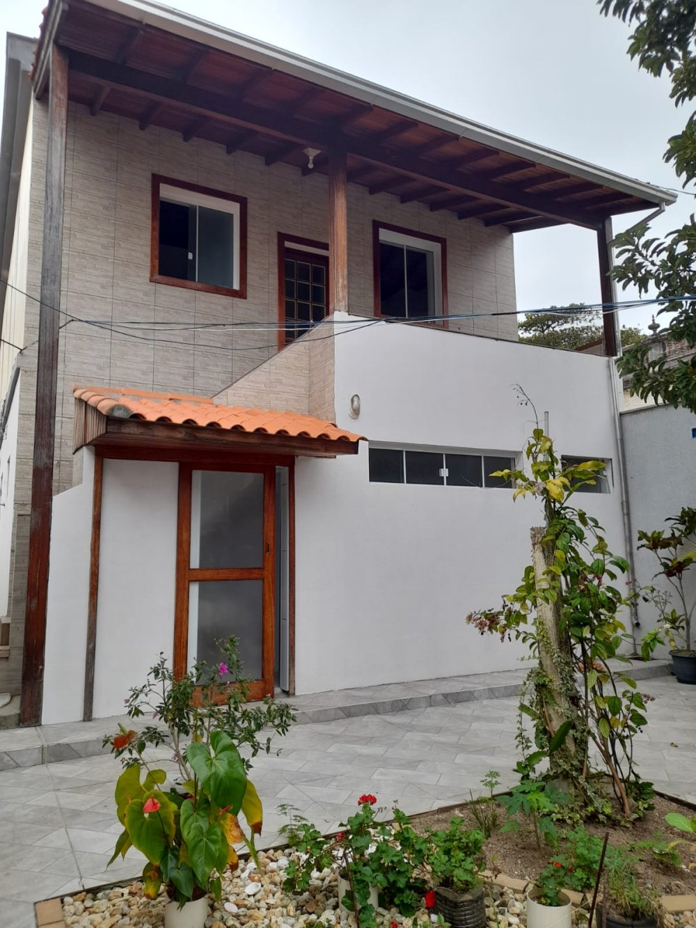 Atrás da sala comercial no térreo tem lavanderia, cozinha, 01 banheiro e em cima uma casa toda de madeira nobre.
