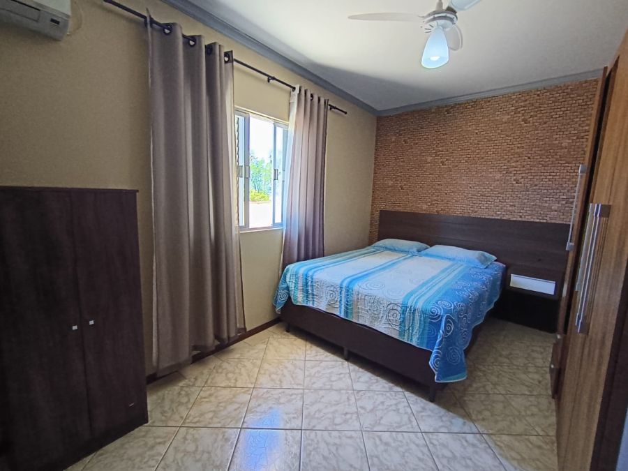 Ar condicionado em um dormitório e ventilador de teto em dois dormitórios e sala.